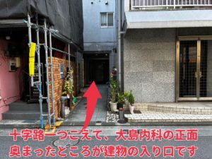 大島内科さんが見えたら正面の建物「リンドール本八幡」に入ります。